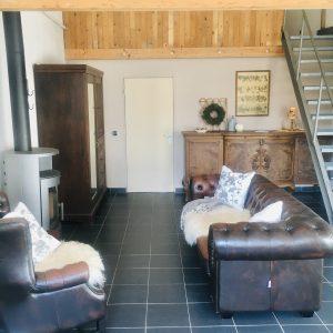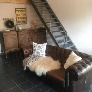 Das Apartment ist zweigeschossig und in einem Nebengebäude untergebracht. Es verfügt über ca. 75 qm Wohnfläche, im Erdgeschoss über ein großes Wohn-Esszimmer, einer großen Küche und einem Dusch-Bad. Im Obergeschoss, auf einer Empore, befindet sich ein Schlafzimmer. Ein weiteres Bett, das auch gerne als Tagesbett genutzt werden kann, befindet sich unten im Wohnbereich.
