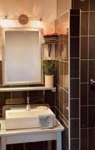 Das Bad ist im Haupthaus gelegen – 50 m entfernt und mit italienischer Dusche natürlich mit Warmwasser, Föhn und Seife ausgestattet. Badetücher, Handtücher, Duschvorleger sind vorhanden.